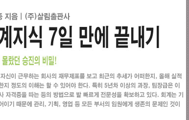 ȸ°è ³Ê¹« ¾î·Æ°í Èûµç±â¸¸ Çϴµ¥ 7Àϸ¸¿¡ ³¡³¾¼ö ÀÖ´Ù´Ï ²À Çѹø Àо°í ½Í½À´Ï´Ù. [ȸ°èÁö½Ä 7Àϸ¸¿¡ ³¡³»±â] ÀλýÀÇ ¼ÒÁßÇÑ Ã¥ÀÌ µÉ°ÍÀÔ´Ï´Ù. ^^*